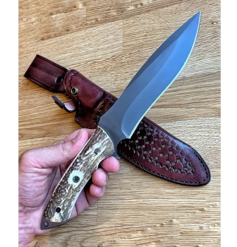 Kiváló minőségű, kézzel készített 1075-ös szénacél vadászkés, éles és tartós, kempingezéshez alkalmas.
